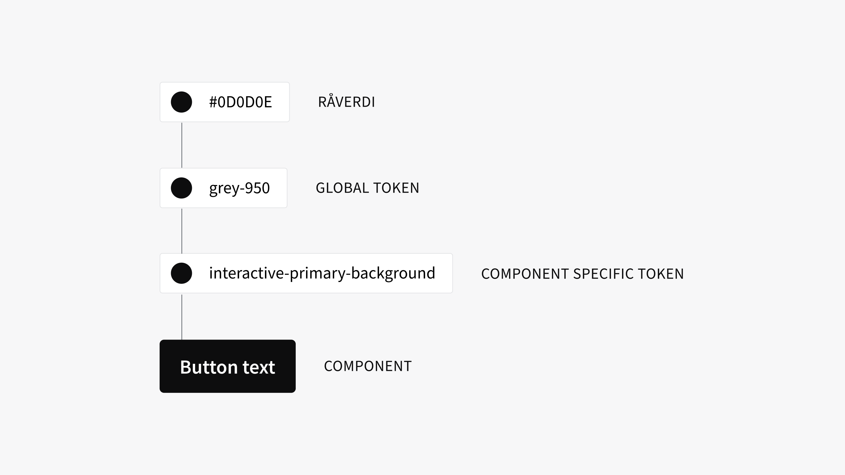 Designsystemet har en tokenstruktur som brukes både i for deisgnere og kode.